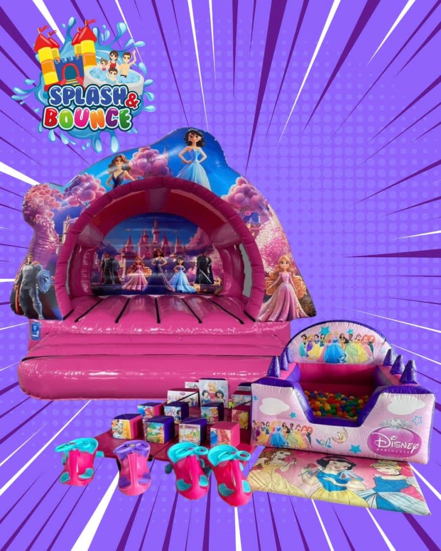 Bring a fairytale to life with our Princess Curved Castle Package + 4 Diddi Cars! This enchanting bundle includes our 13x13ft Curved Princess Combo Bouncy Castle with Slide, matching Princess Soft Play and Ball Pool, plus 4 Diddi Cars — perfect for birthdays, indoor parties, and magical celebrations.
