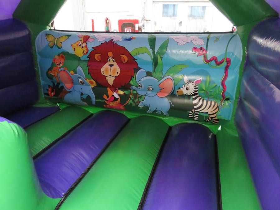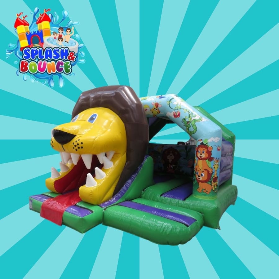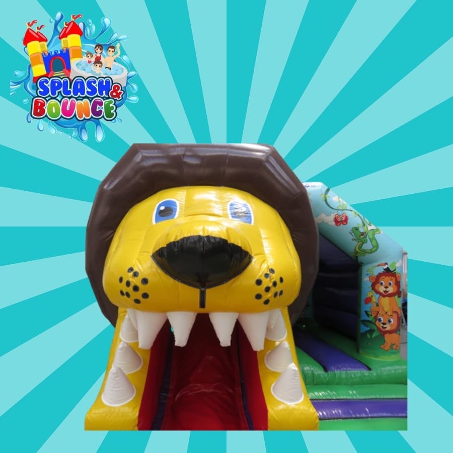 Bring the wild side to your next party with our Jungle Combo Bouncy Castle! Featuring a huge 3D lion head slide that kids can whizz down straight from the bouncy area, this inflatable is bursting with fun and adventure! Bright jungle artwork and playful design make it a firm favourite for any celebration! 🌴