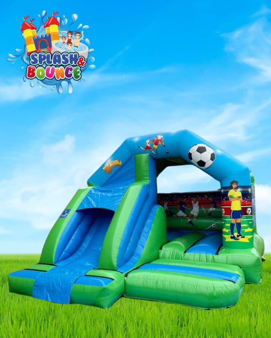 Kick off an unforgettable party with our Football Combo Bouncy Castle! Featuring a built-in front slide and bright football-themed artwork, this inflatable is perfect for young fans ready to bounce, slide, and celebrate their love of the game! Ideal for birthday parties, school events, or football presentation days. ⚡