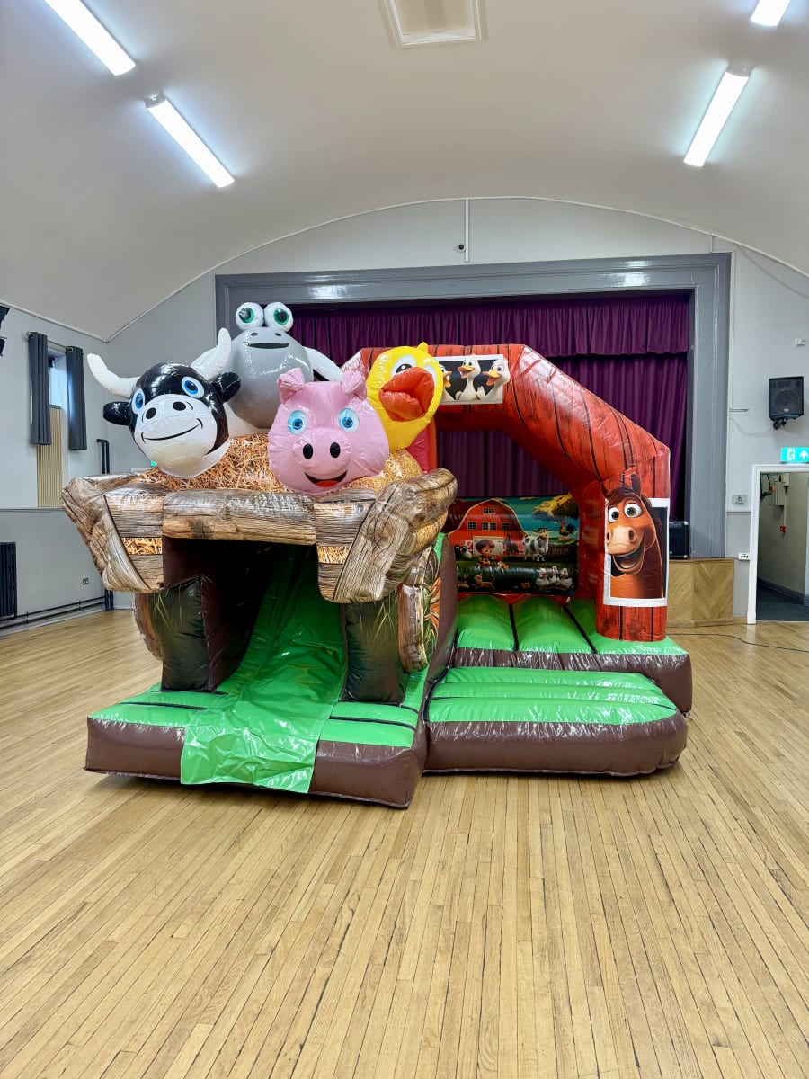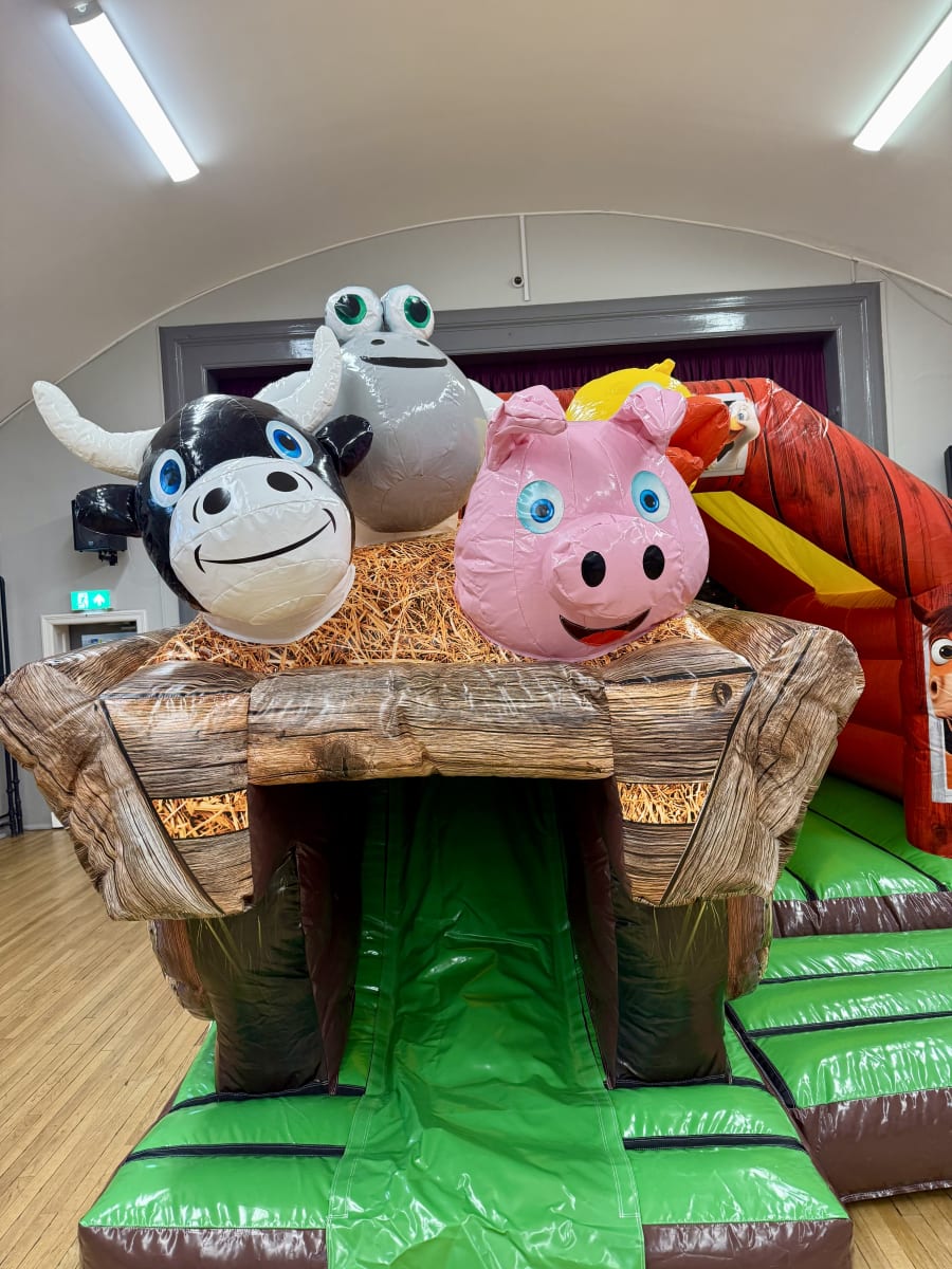 Bounce, slide, and party with our Farm Yard Combo Castle — a fun-filled farm adventure for everyone! 🐷🏰