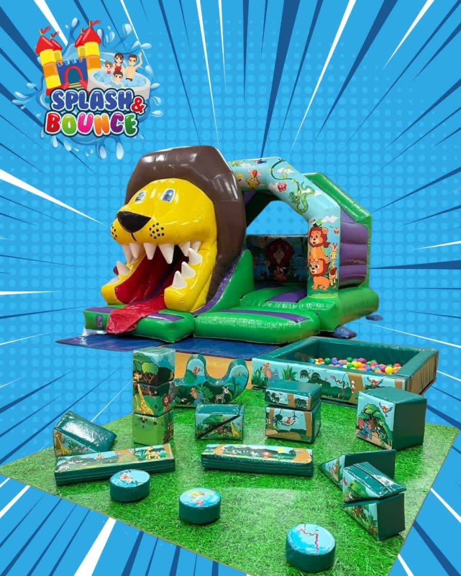 Bring the excitement of the jungle to your indoor party with our Jungle Combo Package! This all-in-one set includes the 13ft x 16ft Jungle Combo Castle with Slide, matching Jungle Soft Play, and Jungle Ball Pool, giving children hours of bouncing, climbing, sliding, and exploring fun. 🐡🌿