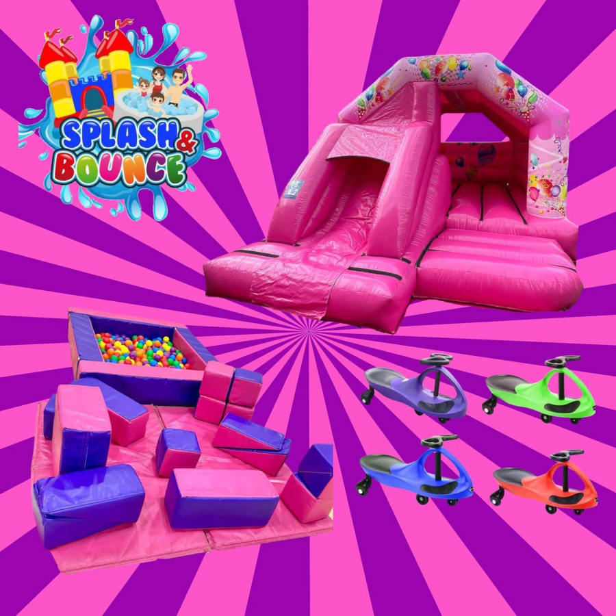 Get ready to party in pink with our Pink Party Combo Package! This indoor-only set includes the 18ft x 12ft Pink Party Combo Bouncy Castle with Slide, matching Pink & Purple Soft Play and Ball Pool, and 4 Diddi Cars — everything you need for a fun-filled celebration that keeps little ones entertained for hours! 🎉