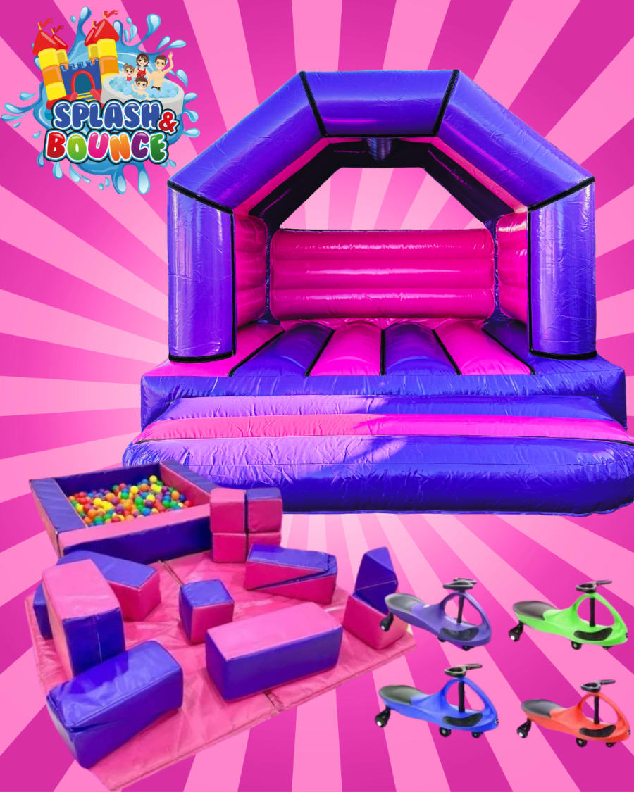 Turn your celebration into a fun-filled adventure with our 12x12ft Pink & Purple Party Package with 4 Diddi Cars! This beautiful set includes our pink and purple bouncy castle, matching soft play and ball pool, plus 4 colourful Diddi Cars – the perfect mix of active fun and excitement for children.