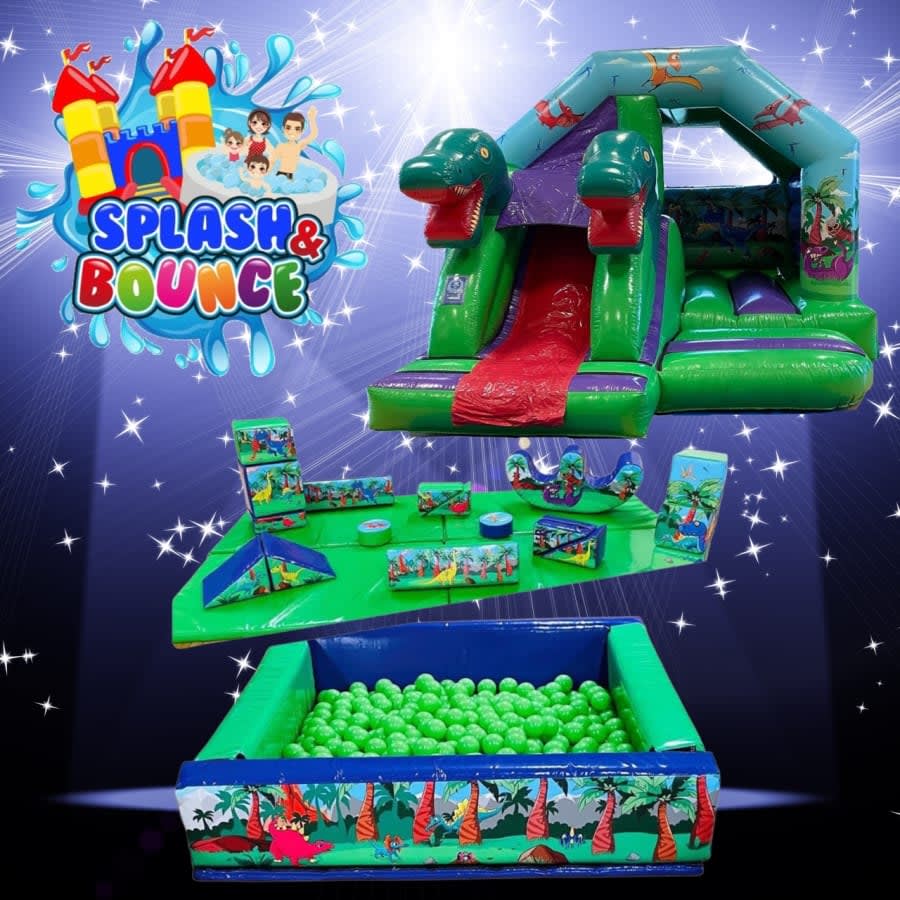 Bring prehistoric excitement to your party with our Dinosaur Combo Package! This indoor-only set includes the 13ft x 16ft Dinosaur Combo Castle with Slide, featuring two 3D dinosaur heads for extra dino-realism, along with matching Dinosaur Soft Play and Dinosaur Ball Pool, giving children hours of bouncing, climbing, sliding, and dino-sized fun. 🌋